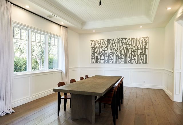 Forget about keeping up with the Kardashians; we’re trying to keep up with Scott. Surprisingly, his Hamptons-inspired home is all about traditional design with minimalist and mid-century touches. His style is definitely noticeable on his dining room table paired with Jean Prouve Standard Chairs to create that mid-century meets minimalism aesthetic.