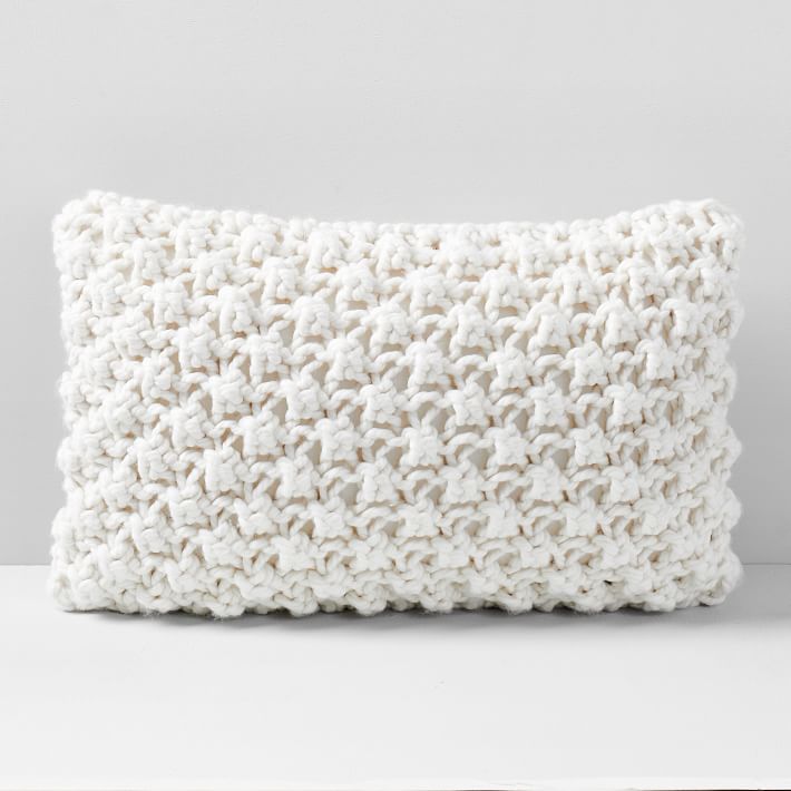 Don't stop with just adding a blanket. Throw pillows, especially lumbar pillows- can add a touch of personality and functionality. Deeper chairs sometimes need added lumbar support to be comfortable for longer reading sessions. Consider looking for a pillow in a 12x20 size, so that it can stretch the width of your reading chair. We love the Bobble Knit Pillow from West Elm. The texture adds an interesting detail and it is sized perfectly for supportive use.
