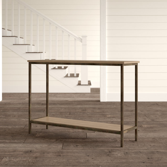 Pottery Barn is known for offering beautiful farmhouse pieces with a unique edge. We love the simple and clean lines of this rustic Malcolm Console Table. The Birchlane Cadence Console Table also offers a similar clean rustic top with the bonus of a bottom shelf.
